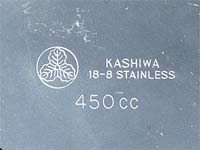 製品には底面など目立たないところに「KASHIWA」のマークと、製品によっては内容量やサイズも打刻しています。